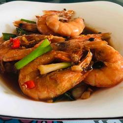 9.Add the prawns, an appropriate amount of light soy sauce, a little old seasoning and an appropriate amount of sugar.