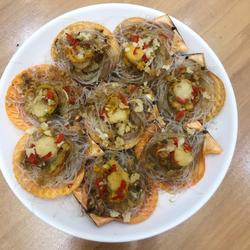 8.Take a small bundle Make vermicelli into small circles and place it on the washed scallop shell, and then put the scallop meat on top