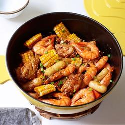 Chicken wings, rice cake and shrimp How to make a claypot
