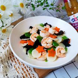 6. Boil water in a pot, put the yam, Blanch fungus, carrots, and shrimp until fresh, remove and set aside
