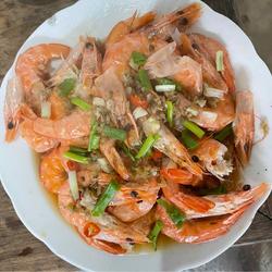 7.When the time is up, take out the shrimp, sprinkle green onions on the surface, and eat it with dipping sauce.It tastes better.It is really delicious from the soul.I can’t wait to lick my fingers clean.