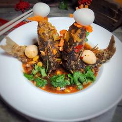 1.Clean up the happy head fish, add cooking wine and salt, spread evenly inside and out and marinate to taste