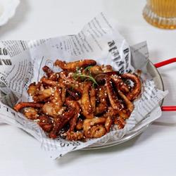 6. Cover the air fryer with tin foil, add squid, and bake at 180 degrees for 10 minutes