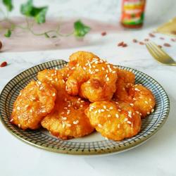 5.Heat the oil in the pot, wrap the shrimps in fried batter and put them in.If they float quickly, you can start frying