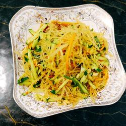 2. Shred cucumbers and carrots, mince garlic, and cut off coriander , a spoonful of chili oil