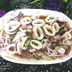The squid must be fresh.It will be chewy and delicious when steamed.It only takes about 15 minutes to steam it.It should not be too long as it will affect the taste.