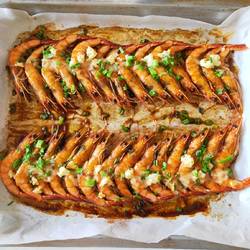 1.Clean the fresh shrimps, remove the shrimp lines and place them on the baking sheet