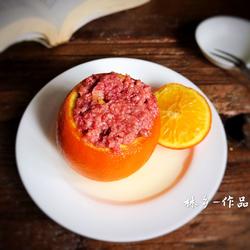 Put the steamed pork into fresh orange peel and steam it for no more than 10 minutes.Steaming for a long time will affect the taste.