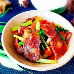 Serve the celery pieces raw.If you like the vegetables softer, stir-fry them for a while.