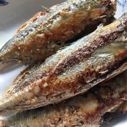 7.Put in the fresh fish (you have to be patient to fry the fish well.You can fry the fish while washing vegetables, cooking or doing housework).Change the pot halfway so that the fish can be fried evenly