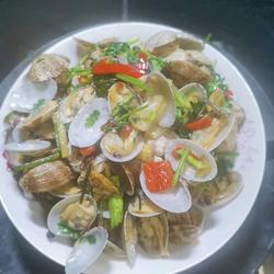 4. Add the flower armor, stir-fry a few times, add cooking wine, and stir-fry for two minutes on high heat.Add some hot water, cover the pot and simmer for a while
