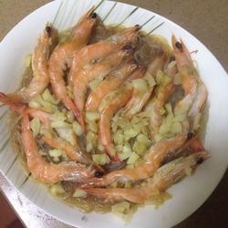 2. Soak the vermicelli until soft and put it into a basin for later use.Place the shrimp on top of the vermicelli.