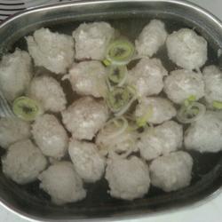 4. Boil the water over medium heat until it becomes warm and start rolling out the meatballs (just use a spoon to form them into appropriate sizes).According to the size of the meatballs, boil the pot for 30 seconds to 1 minute.Turn off the heat, add a little salt, chopped green onion, and coriander and serve