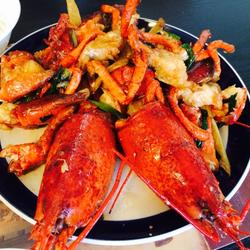 7.Finally, stir-fry the lobster, then pour in the wine and a little soy sauce to complete it