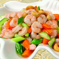 10.To enter the speculation Stir-fry the good shrimps for 1 minute, add carrots, a few cashews, and take out the pan