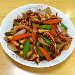 12. When the vegetables are six or seven times ripe, add the marinated squid and continue Stir fry over high heat.
