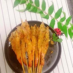 6. Boil the oil in the pot and put the skewered prawns into the pot