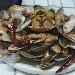 3. Wash the clams after spitting out the sediment.Wash, boil water in a pot, put a few slices of ginger in it, then sprinkle some cooking wine, then put the clams in and blanch them