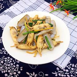 5. Add razor clams and stir-fry over high heat, add white wine, light soy sauce, a little salt and sugar to taste.