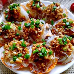 5. Soak the vermicelli until soft and place on the scallops On top, put the minced garlic on top, pour some steamed fish soy sauce, and steam for 10 minutes.