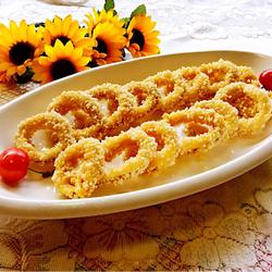 10.Put the fried squid rings out with chopsticks and put them on the plate