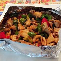 4. Line a baking sheet with tin foil , pour the marinated squid and put it in the oven