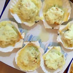7.Put Ma Su Spread the cheese evenly all over the scallops and preheat the oven to 200 degrees