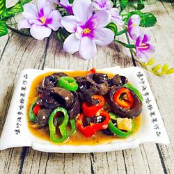 9.Finally, pour the green and red peppers and minced garlic into the pot at once and stir-fry