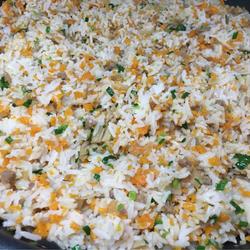 7. Mix the cooked rice and stir-fry evenly, add coriander and green onions and serve