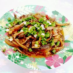6. Then pour in the eel, stir-fry and cover the pot.About 3-5 minutes will do.