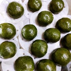 5.Add water to the steamer and bring to a boil, put the green dumplings on top and steam for about 12 minutes