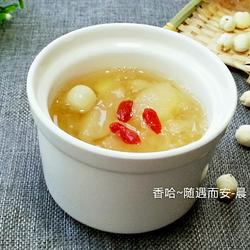 2. Soak the white fungus, wash and tear it into small florets, the smaller the better; soak the lotus seeds half a day in advance; peel, core and cut the pear into slices