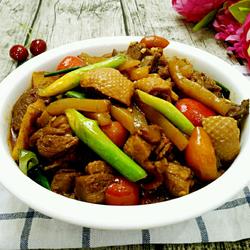 11. Pour in the duck cubes and konjac and stir-fry, add cooking wine, light soy sauce, dark soy sauce, Stir in sugar and pepper until combined.