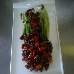 5.A little cooking oil , stir-fry ginger and garlic until fragrant, then add dried chili pepper and dried Sichuan peppercorns, stir-fry until fragrant (do not burn the dried chili pepper)