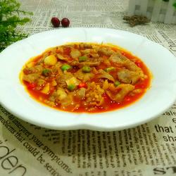8.Pour the prepared sour soup onto the cooked fat beef.