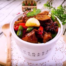 6.Pour in the drained duck pieces , stir-fry until it changes color