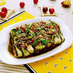 17. Pour the sauce on the eggplant and sprinkle with cooked white sesame seeds.
