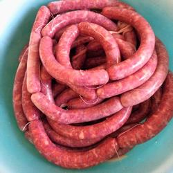 1. Mince the pork belly and mix with the Cantonese sausage seasoning bag (according to personal taste, you can also You can choose other flavor packages), stir well, and use a funnel to pour the meat into the intestines!