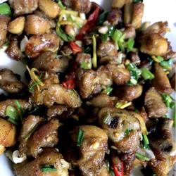 5.Put some oil in the pot Fry the chicken legs and add some salt.Adjust the saltiness and stir-fry yourself.Pour in all the ingredients and stir-fry.Then put on a plate and start?
