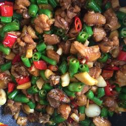 6. Stir-fry until fragrant.Pour the previously fried chicken into the pot and continue to stir-fry.