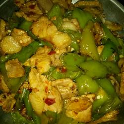 5. Heat 80% rapeseed oil, put down the fat and fry until it is dry.Add the lean meat and stir-fry for a few times, then put down the ingredients and chopped peppers, and you are ready to start the pot