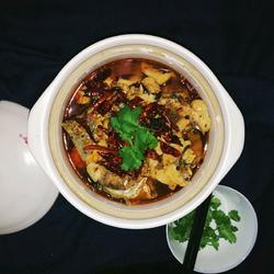 3. Preheat the ceramic pot with 10g of olive oil and add 10g Sauté ginger, garlic, dried peppercorns and chili until fragrant.Add 20g of Lee Kum Kee Doubanjiang and continue to stir-fry.When the flavor comes out, pour in 500ml of stock.Cover the pot and cook for two minutes.Bring to a boil.Remove 500g of marinated fish fillets.Cook for two minutes and add appropriate amount of vinegar to taste.Remove from the pan.