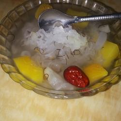 8. Prepare all the materials, use a pot to boil water, and put the papaya Add the sweet potatoes and cook until they are eighty-ripe, add the hollow noodles, cook for a while, then add the white fungus, cook for a while, add the snow lotus seeds, cook for a while, add the nozzle, rock sugar, red dates, and sago, cook together until the rock sugar Just melt it away.
