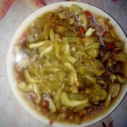 1.Prepare 2 eggplants, peel and cut into small pieces