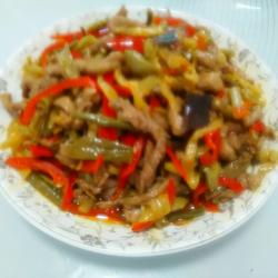 3. Heat the oil in the pot, put in the shredded pork and spread it into eight layers When cooked, it can be plated and ready for use.