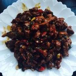 7.Pour in chicken gizzards and stir-fry quickly evenly