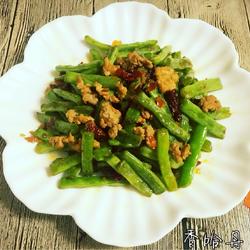 8. Stir-fry until the meat changes color and then add the green beans and stir-fry