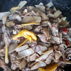 6. Then scoop the duck out of the pot and put the Sichuan peppercorns, pepper and ginger into the pot and saute until fragrant.