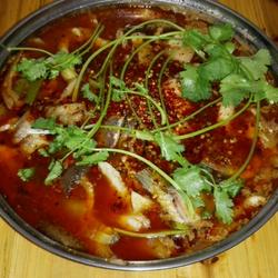 7.After the fish is cooked, pour the dried Sichuan peppercorns and sea pepper buns from the Haorenjia seasoning pack on the fish.Pour a little oil into a pot and heat it.Pour the hot oil on top of the sea pepper and Sichuan peppercorns, and then sprinkle Just cilantro