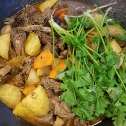 7.Put in peanut oil, sauté ginger and garlic until fragrant, add star anise green peppercorns, bean paste, licorice, dried ginger and dried chili and stir-fry for half a minute.Put the duck meat into the pot and stir-fry for one minute.Pour in one or two sorghum wine and stir-fry for half a minute.Add chili powder and Sichuan peppercorns and stir-fry for half a minute.Add two cans of beer and cook over high heat.